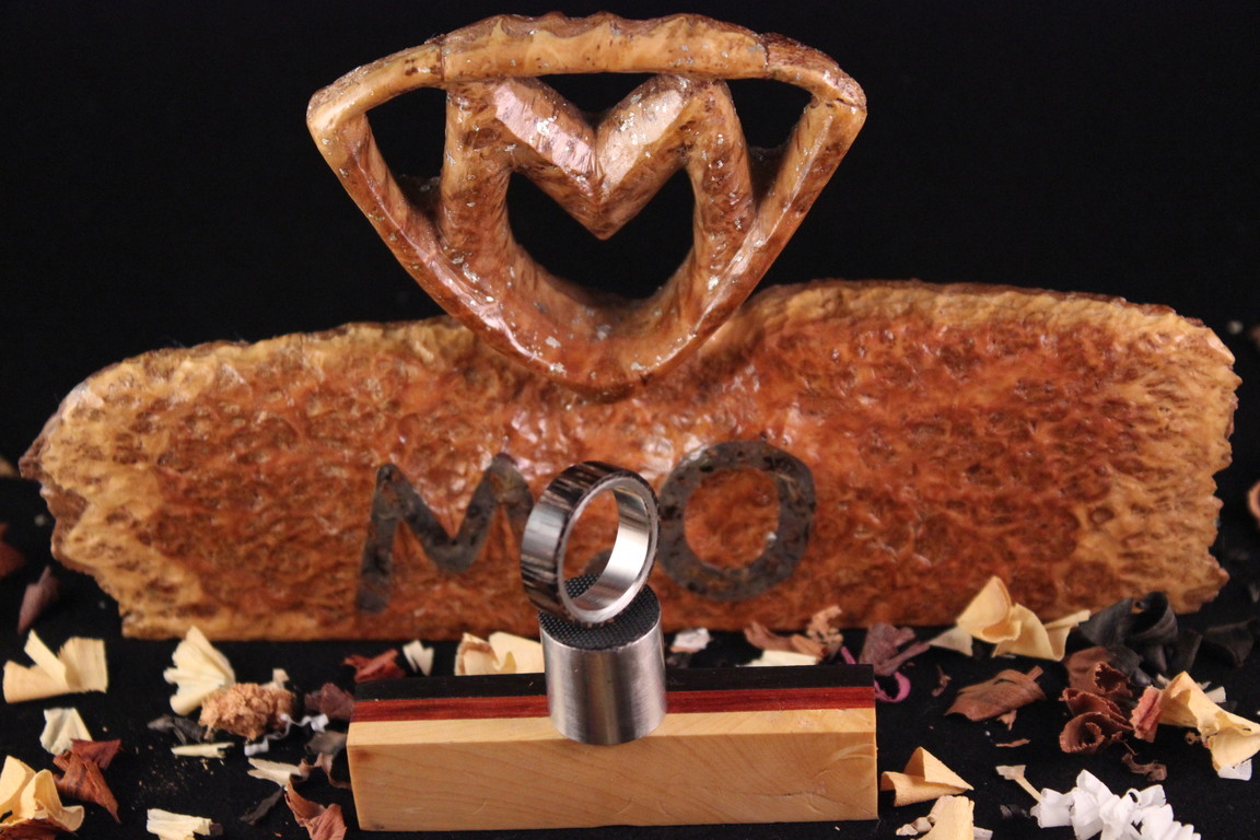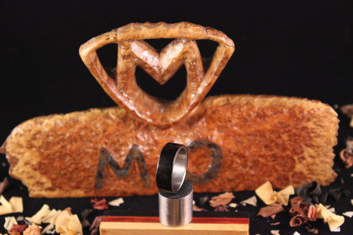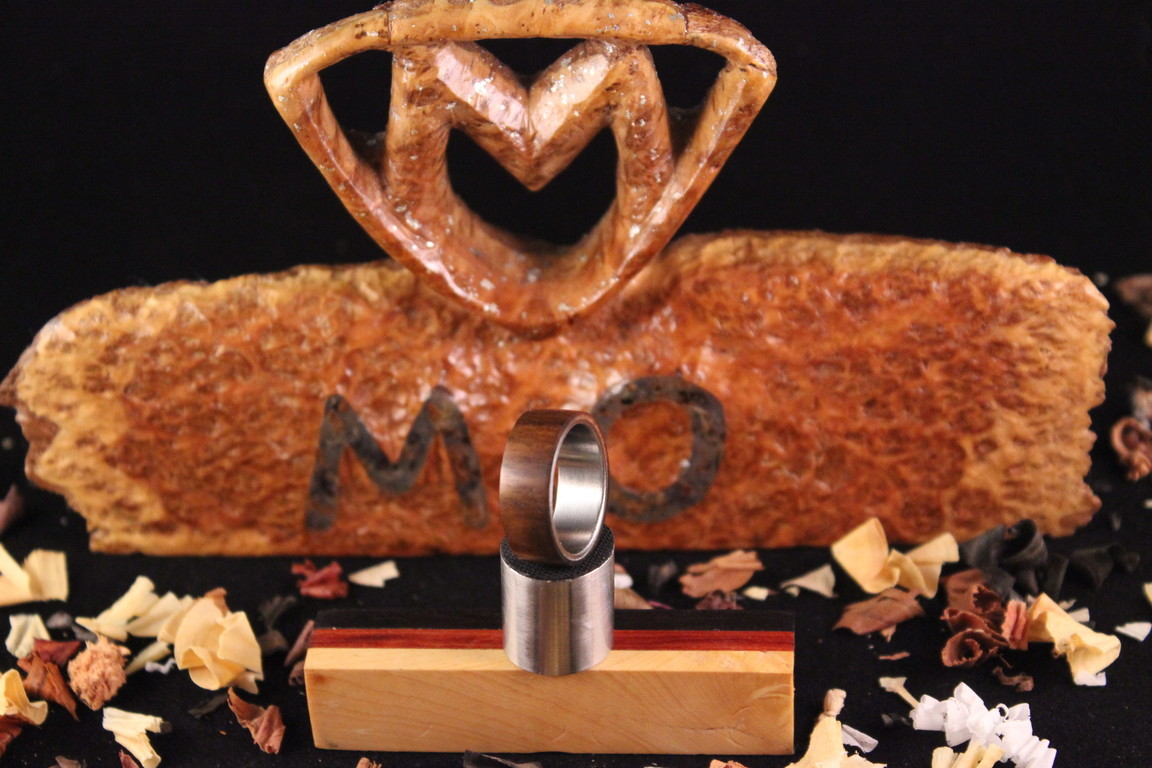 Ringe wird jedes Holz von uns zu sehen sein. Sie können alles, egal ob Ringe, Ohrringe, Manschettenknöpfe... aus demselben Holz bekommen, auch aus einen Stück!